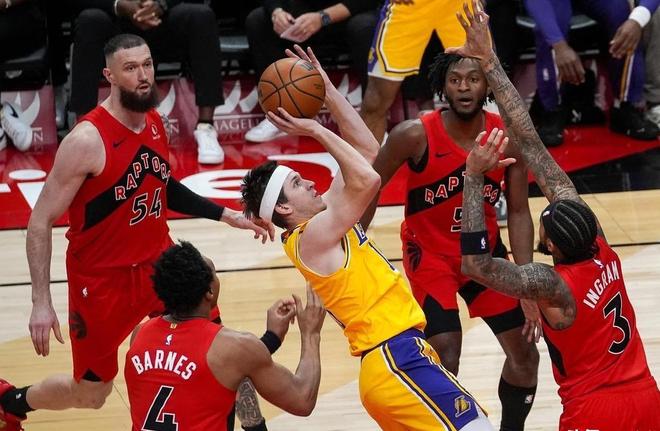 在末节的随后双方都拿出了全力,马穆凯拉什维利打成2+1,詹姆斯力挽狂澜最终助攻八村塁压哨三分,这也使得湖人队险胜猛龙。