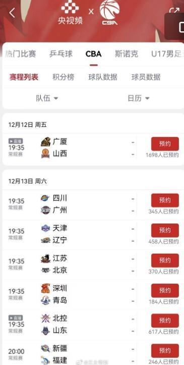 从这位媒体人的话中可以提取信息,首先CBA比赛还是有直播的,但只限于央视,而且只播一场,还是挑有看点的。12月12日CBA常规赛揭幕战,央视肯定直播。不过12月13日的比赛就大部分没有直播了,只播北控和山东的比赛。